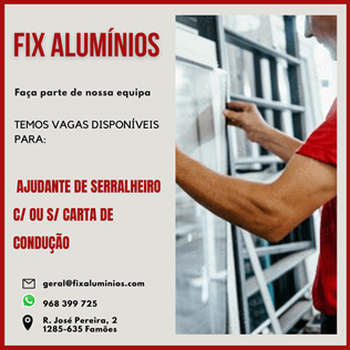 Ver Favoritos Continuar a Navegar×Para adicionar o anúncio Ajudante de Serralheiro , M/F, Precisam-se aos seus favoritos é necessário efectuar o login com a sua conta.