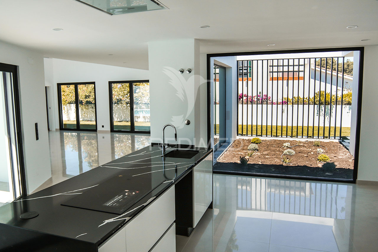 Apresentamos uma moradia isolada NOVA, com uma generosa área bruta de 352 m².Ideal para quem procura conforto e qualidade de vida, esta casa conta com 4 quartos, dos quais 3 são suites, proporcionando privacidade e comodidade para toda a família. O salão espaçoso de 50 m² é perfeito para momentos de convívio, enquanto a cozinha moderna de 26 m² oferece um espaço funcional e muito acolhedor.Situada na prestigiada urbanização de Verdizela, a moradia beneficia de uma localização privilegiada, a escassos 5 minutos da autoestrada A33, a apenas 10 minutos das lindas praias da Caparica e Fonte da Telha, e a 5 minutos do Campo Internacional de Golfe da Aroeira.Este imóvel é equipado com estores elétricos, caixilharia de alta qualidade com vidros duplos térmicos, e um sistema de águas quentes AQS Bosch Vulcano de grande capacidade. O ar condicionado Mitsubishi topo de gama garante o máximo conforto em todas as estações do ano.No exterior, destaque para a fantástica piscina, que possui uma ótima exposição solar, e um espaço ajardinado de excelente qualidade, ideal para desfrutar de momentos de lazer ao ar livre.Não perca a oportunidade de viver neste espaço de excelência! Agende a sua visita hoje mesmo!Predimed Imobiliária, Mediação Imobiliária, Lda.Avenida Brasil 43, 12º Andar, 1700-062 LisboaLicença AMI nº 22503Pessoa Coletiva nº 517 239 345Seguro Responsabilidade Civil: Nº de Apólice RC65379424 Fidelidade