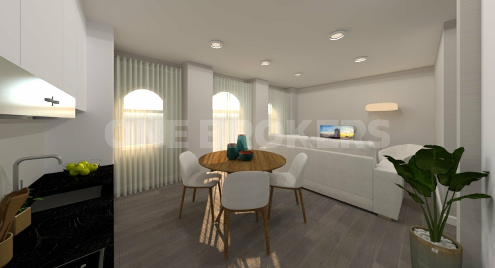 Apartamento Moderno com Vista para o Rio - Cozinha e Sala de Estar